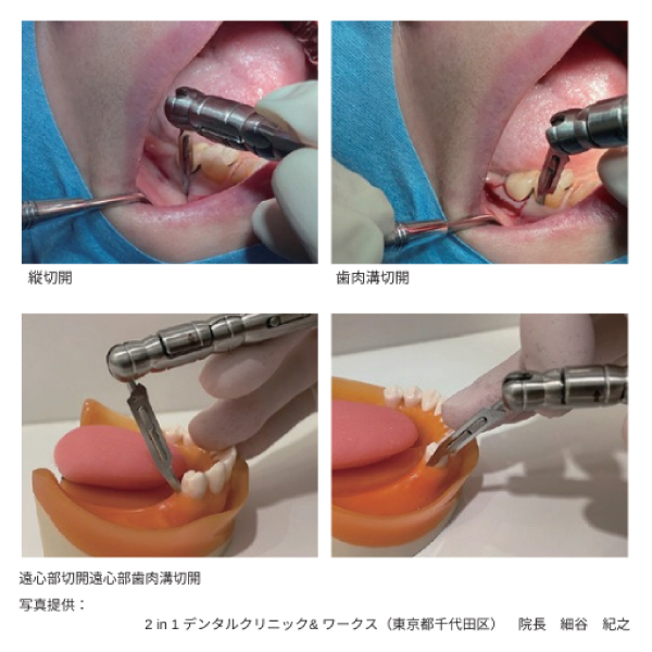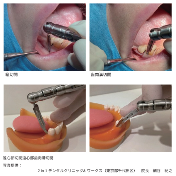 口腔内の部位に合わせてメスホルダーの角度を変更できるので、